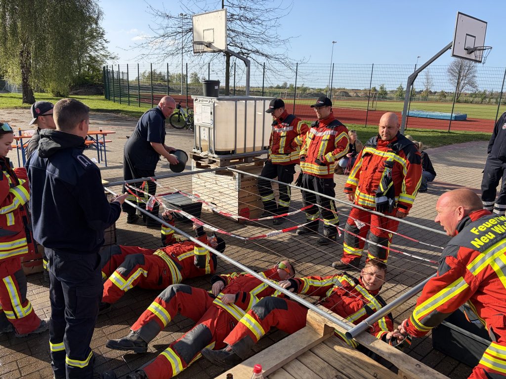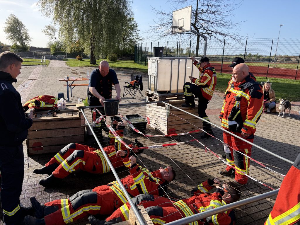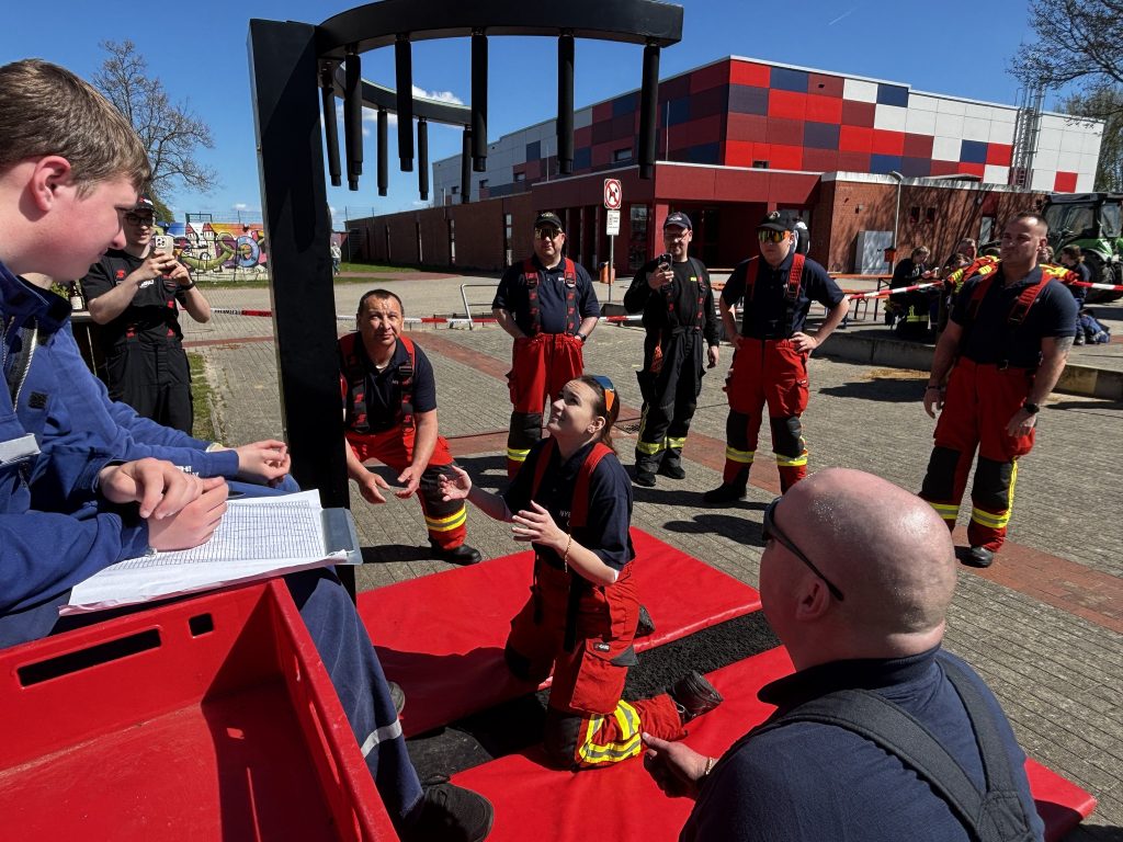 Unser Team ist bereits am Freitag in Neu Wulmstorf, der Schwesternsiedlung Nyergesøjfalu angekommen. Am Tag vor dem Wettkampf organisierten unsere deutschen Kameradinnen und Kameraden freundschafts- und feuerwehrtechnische Berufsprogramme für die Mitglieder der NYÖTE Nach einem reichhaltigen Frühstück ist die Mannschaft am Sonntag zusammen mit den örtlichen Freiwilligen zum Wettbewerb nach York aufgebrochen. Im fröhlichen Wettkampf umfasste die Aufgaben eine kooperationssteigernde Übung, ein Reflextest, eine Geschicklichkeitsherausforderung, sowie eine professionelle Aufgabe – zum Beispiel das Anrichten von Feuerlöschern nach Gewicht. So spielten nicht nur Fachwissen, sondern Teamarbeit und Kreativität eine wichtige Rolle.