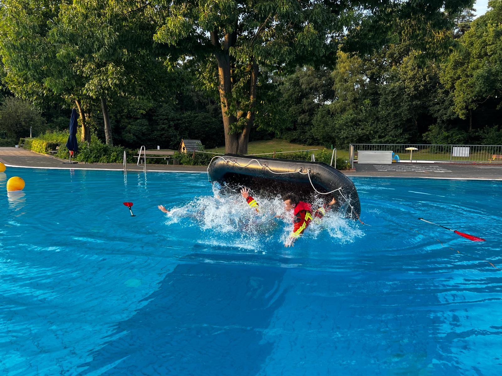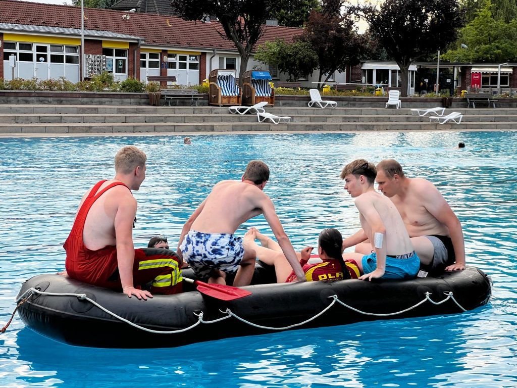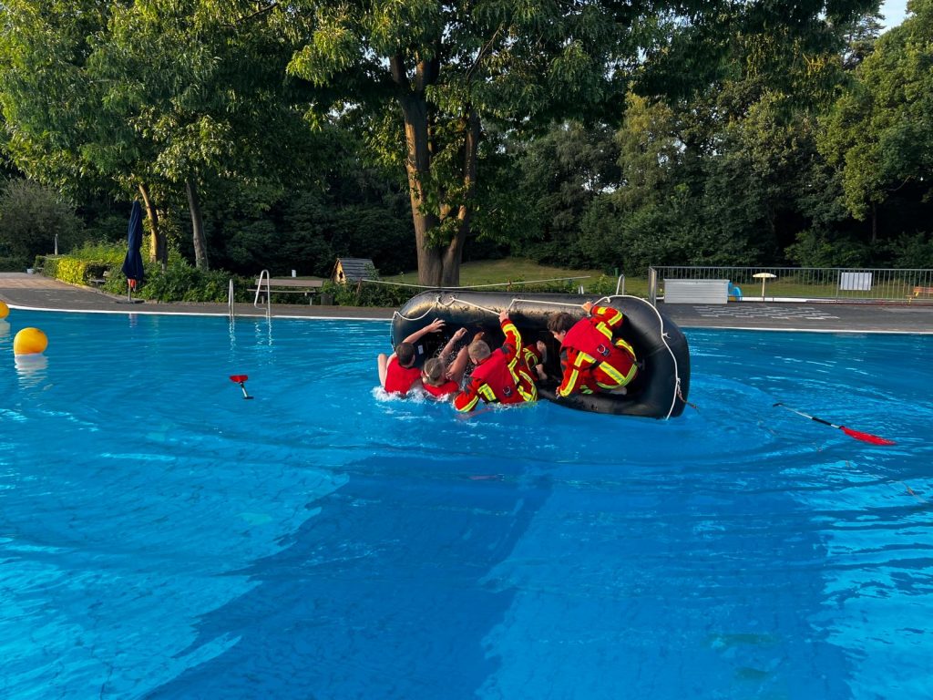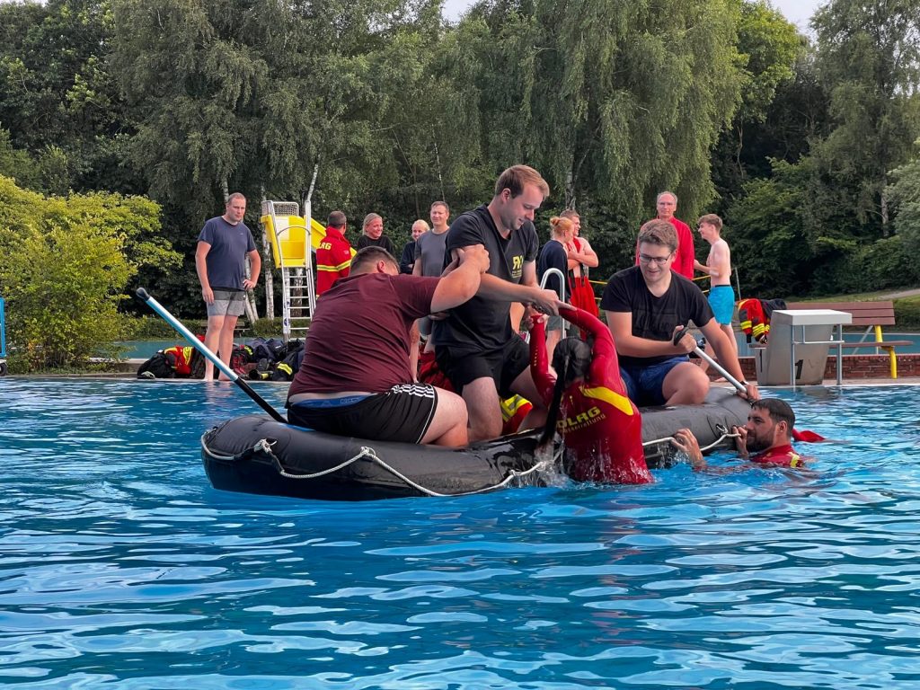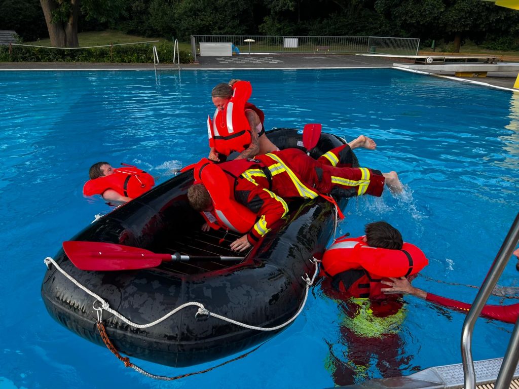 Am Donnerstag hatten wir die Kameradinnen und Kameraden der Feuerwehr Elstorf bei uns zu Gast. Gemeinsam haben wir den Einsatz mit ihrem Schlauchboot geübt – vom Retten von Personen bis hin zum richtigen Verhalten, wenn das Boot bei Hochwasser kentert. Auch das Aufrichten des Bootes und die Selbstrettung standen auf dem Programm.