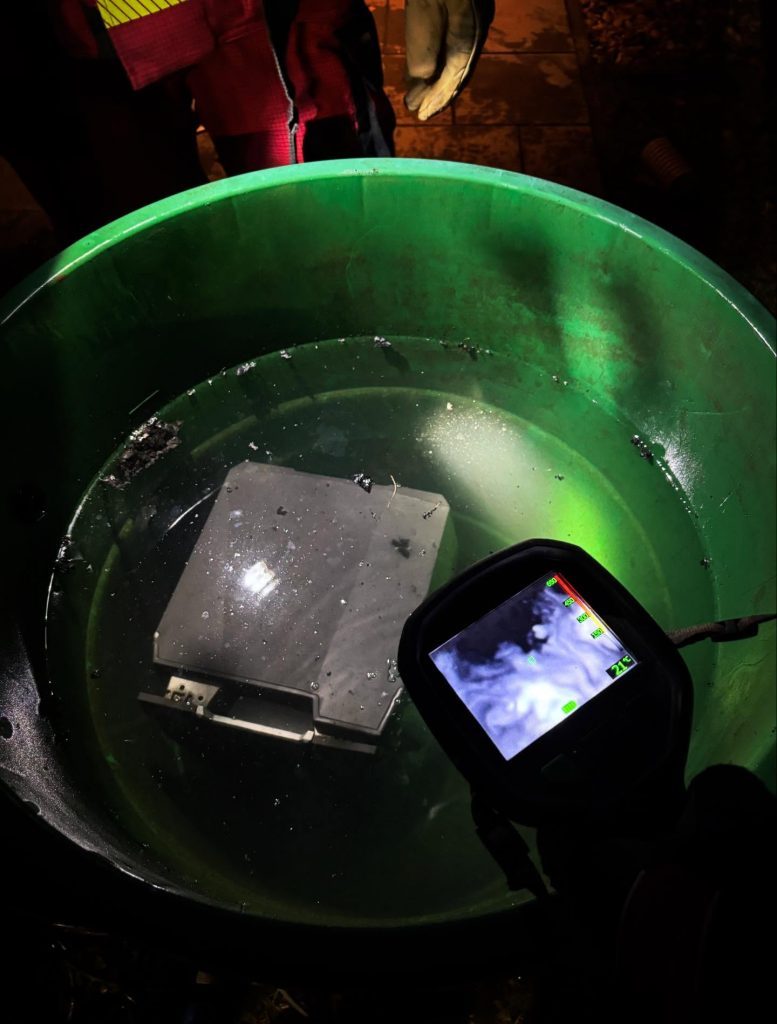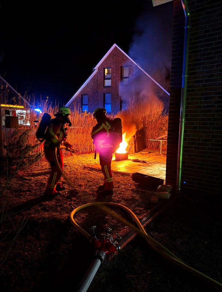 Vor Ort brannte die Batterie eines Balkonkraftwerkes auf einer Terrasse. Ein Trupp unter Atemschutz ging mit einem C-Rohr vor und konnte das Feuer zügig löschen. Zur weiteren Abkühlung wurde die Batterie anschließend in eine Wassertonne verbracht.