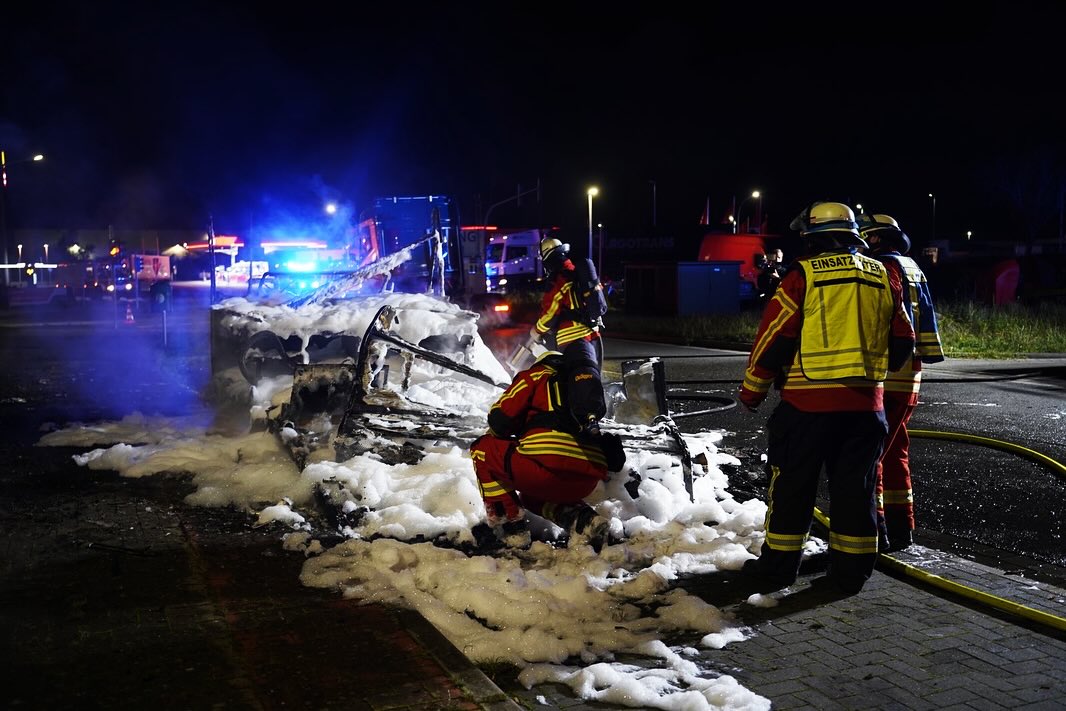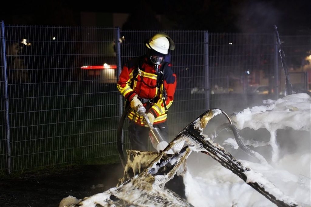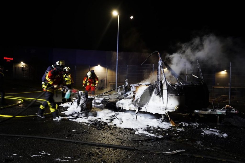 Mit zwei C-Rohr, sowie einem Schaumrohr wurde der Wohnwagen gelöscht.