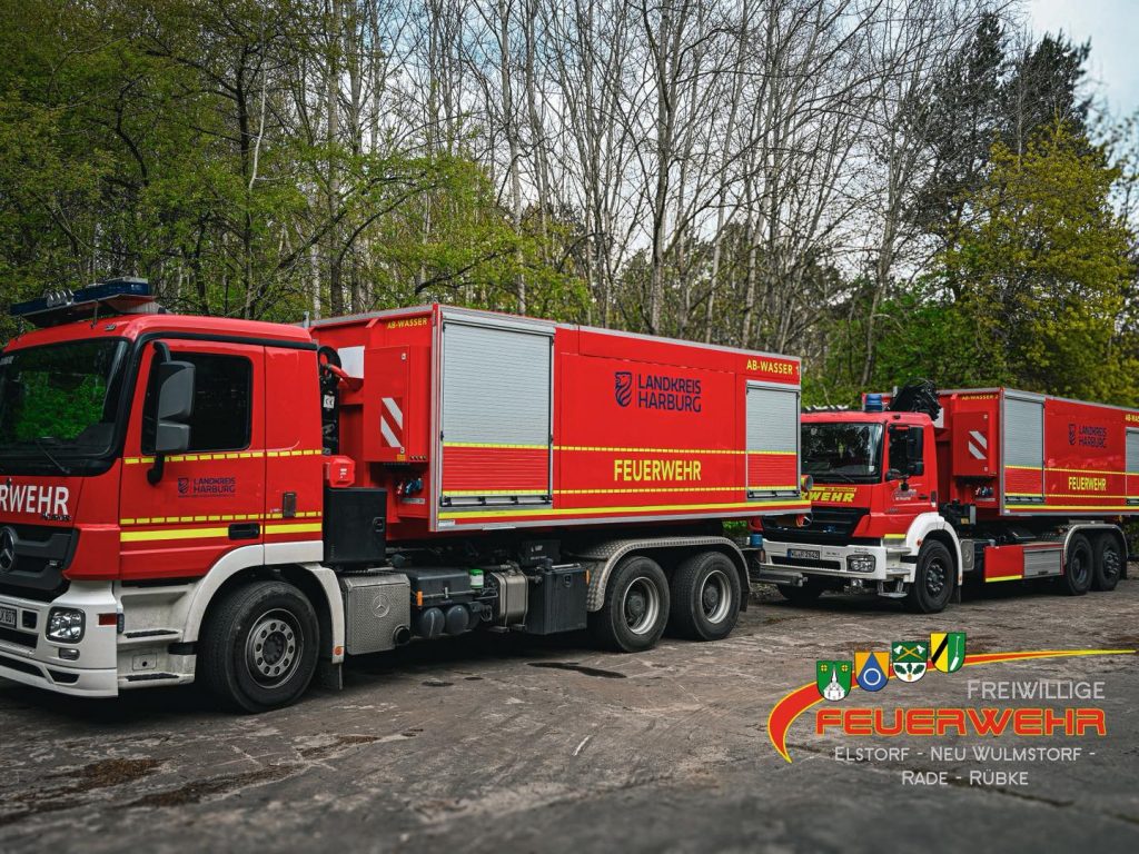 Aus der Ortsfeuerwehr Neu Wulmstorf unterstützte der Wechsellader mit dem Abrollbehälter Wasser gemeinsam mit dem Abrollbehälter Wasser der Feuerwehr Lindhorst bei der Löschwasserversorgung.