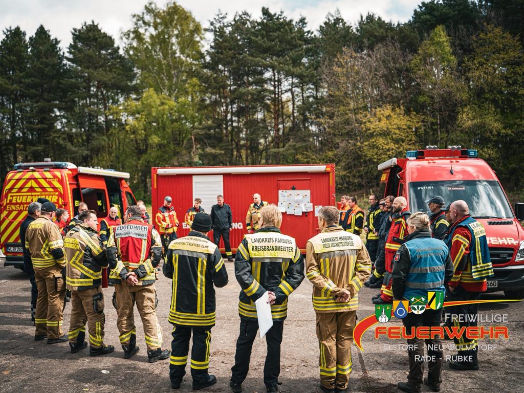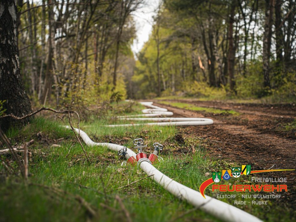 Die Kreisfeuerwehr übte mit den Brandbekämpfungszügen 2 und 3 sowie dem Wassertransport- und Wasserförderungszug den Aufbau einer Riegelstellung. Die Herausforderung stellte die nicht vorhandene Wasserversorgung im Waldgebiet dar. Von einer Zisterne – einem großen unterirdischen Wasserbehälter – wurde eine Schlauchleitung aufgebaut. Zusätzlich wurde mit Tanklöschfahrzeugen ein Pendelverkehr zu einem Hydranten im Ortsteil Wulmstorf durchgeführt.